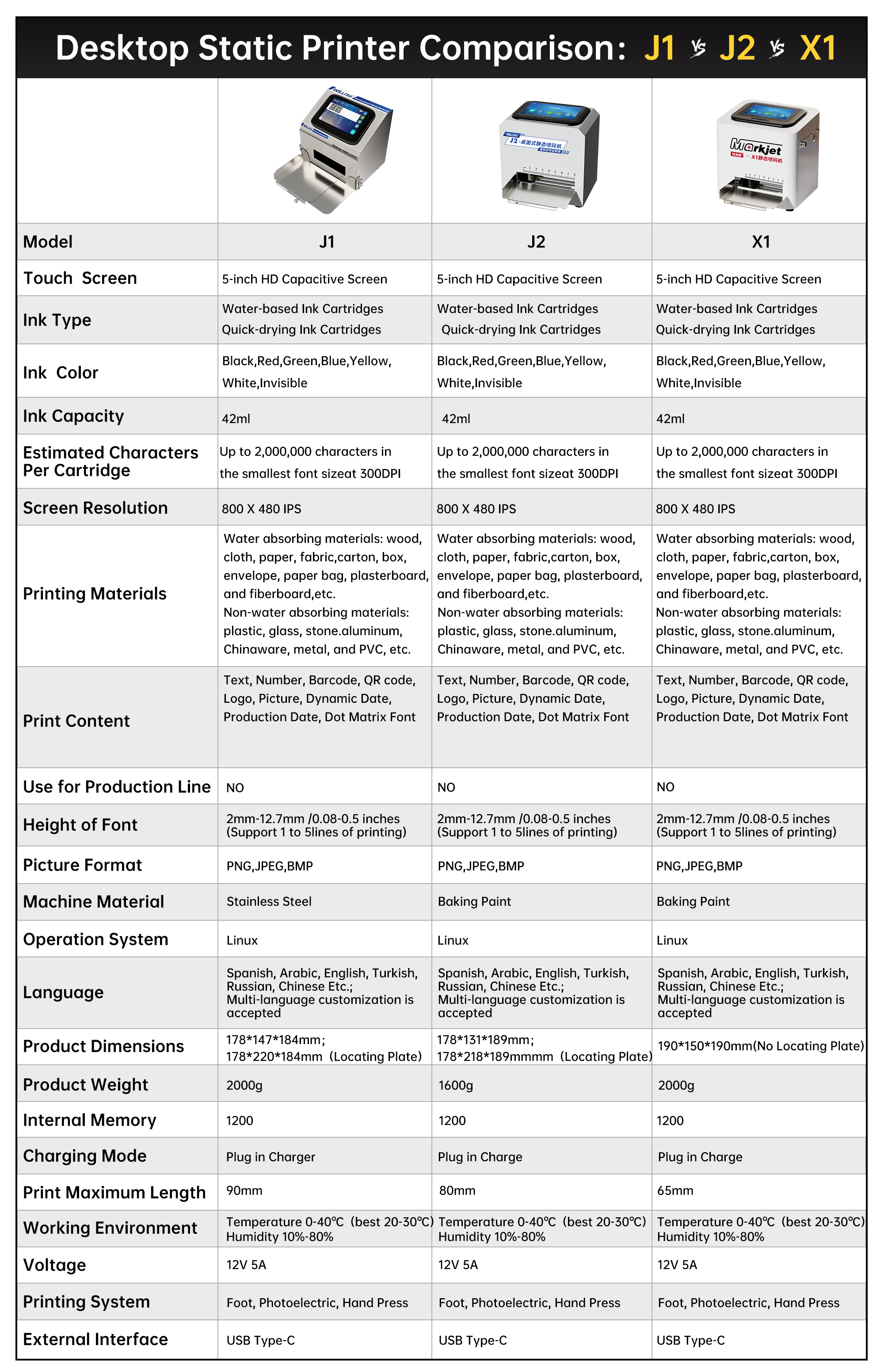 For different types of customers, we have developed a variety of desktop static inkjet printer products for customers to choose. You can check out the product comparison below to choose the best desktop static inkjet printer for you.